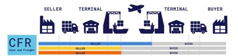 CFR Incoterms 2020 rules are used only for sea or inland waterway transport. When multiple modes of transport are used, which is often the case when the goods are delivered to the carrier at the container terminal, the appropriate rule to use is CPT rather than CFR.
